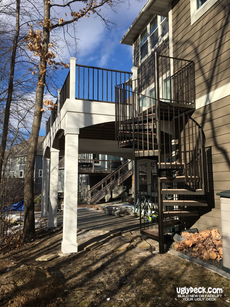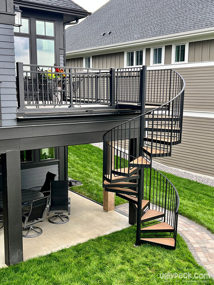 Still trying to decide if an outdoor spiral staircase is right for you? See UglyDeck’s pieces first-hand by visiting our Shakopee showroom. You can experience our deck spiral stairs yourself and talk to our deck building company about which products are best for your specific project. You can also view a large selection of maintenance free deck supplies, deck railings, and other decking material.